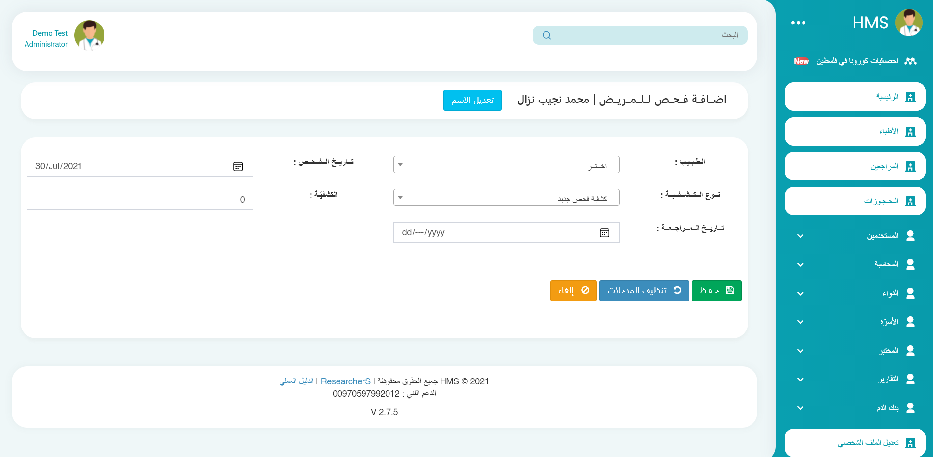 عند اضافة مراجع، جميع المعلومات التي تم ادخالها والخاصة بالمراجع تكون متاحة لجميع أقسام العيادة المختلفة.