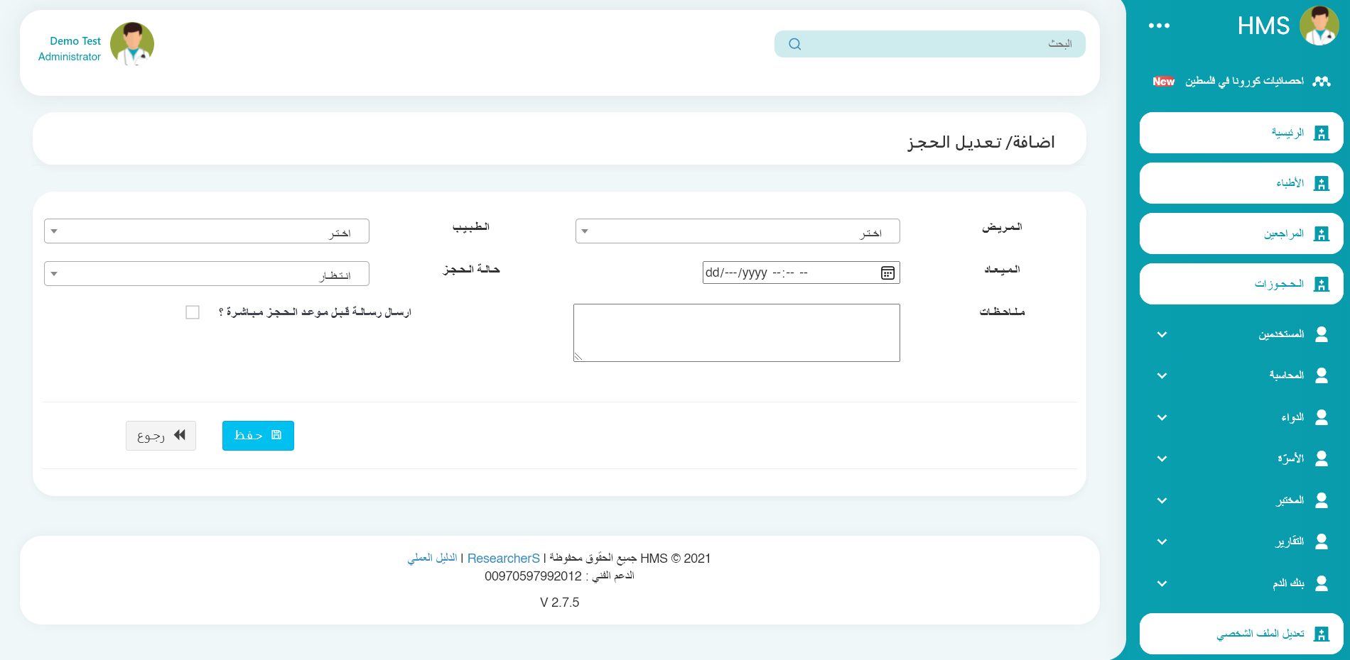 ارسال الرسائل للتذكير بموعد المراجعة وموعد الحجوزات، وذلك لتجنب ضياع وقت المراجعين وتجنبهم الحضور بسبب وجود دور كبير لحين موعد العلاج.