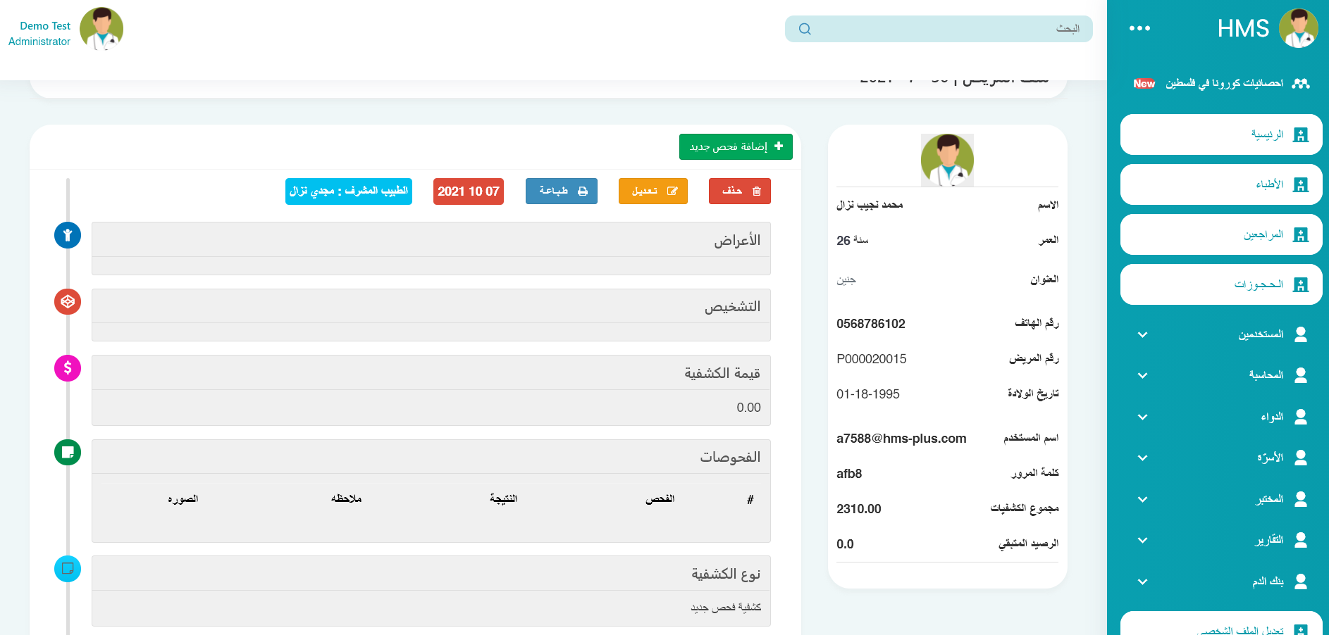 عند اضافة مراجع، جميع المعلومات التي تم ادخالها والخاصة بالمراجع تكون متاحة لجميع أقسام العيادة المختلفة.